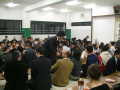 at 19:00. After the 3 films, low tables were set up for the social gathering by Aikikai staff (including Sensei) with some attendance. Traditional SAKE and typical TUMAMI, Kaki-no-tane*(nibblies) were provided by Aikikai. Mr.Shoji Koto gave his speech for the opening. Mr. Fumio Akanuma was a stoaster. During the gathering, Mr.Kisaji Kaneko, Mr. Sho Ozaki and Doshu gave us Kaiso and Kisshomaru-Doshu's reminiscences. |