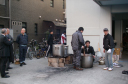 (Every year, Hombu dojo's teachers, instructors and volunteers pound steamed